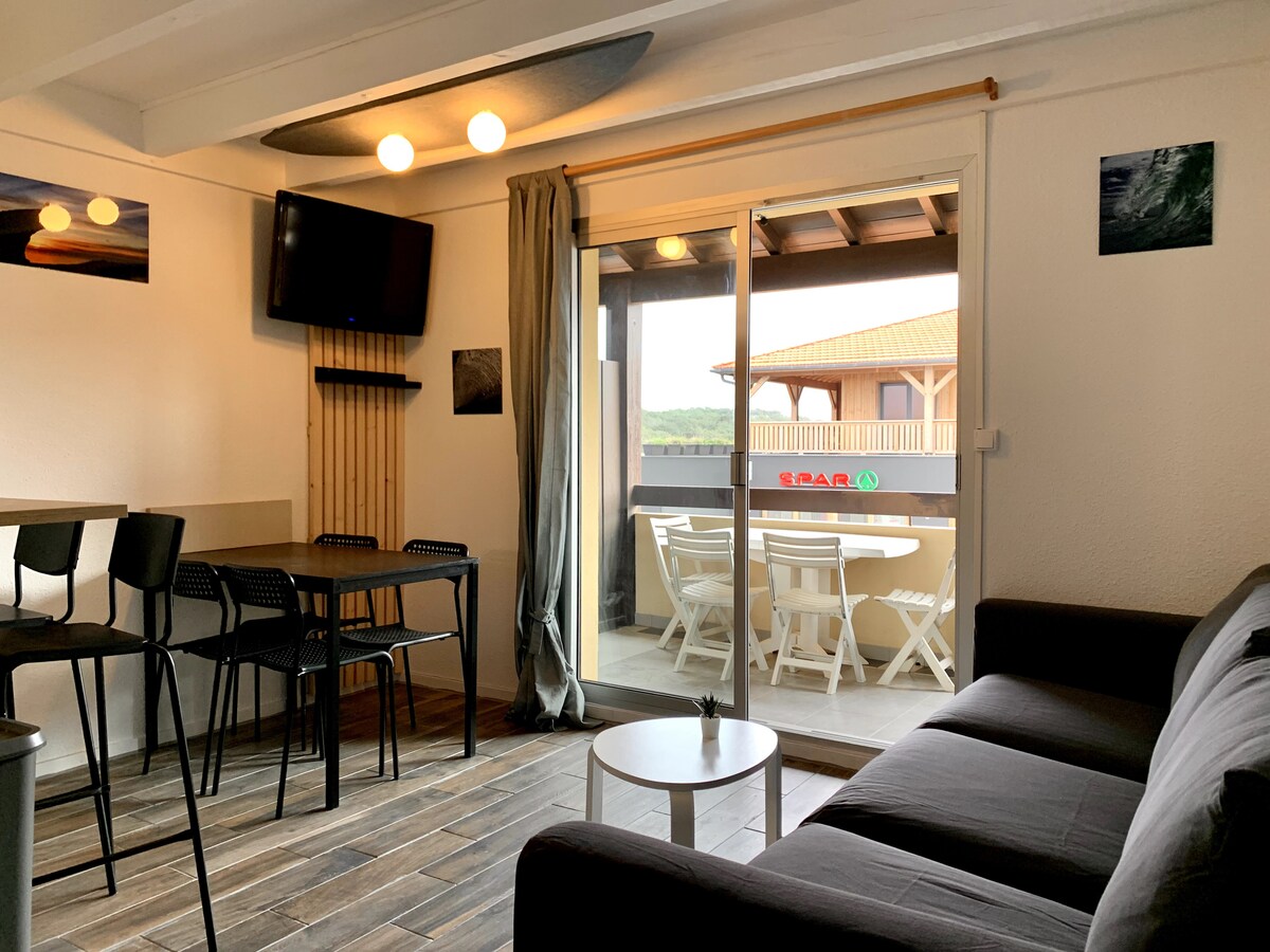 Studio de 36 m² au cœur d' une petite station balnéaire et à 150 M de l'Océan. Commerces, bars, restaurants sur place. Des pistes cyclables ( Vélodyssée), sentiers pédestre et parcours VTT se trouvent également à proximité. A quelques minutes de St girons plage vous pourrez découvrir la réserve naturelle du courant d'Huchet et en profiter pour faire une balade en barque.