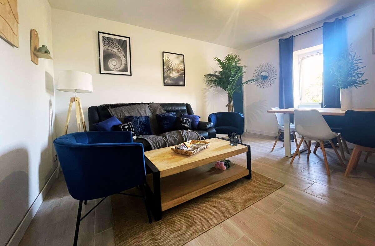 Verið velkomin til Saint-Martin-de-Valgalgues, nálægt Alès, í fullkomnu húsi fyrir frí með fjölskyldu eða vinum, í hjarta Gard. Þetta notalega heimili er staðsett í friðsælu og grænu umhverfi og rúmar allt að sex manns. Þú finnur þrjú björt svefnherbergi, rúmgóða stofu, vel búið eldhús og umfram allt... einkasundlaug sem er fullkomin til að slaka á undir suðrænni sólinni. Bókaðu þér gistingu í þessu litla horni himinsins fljótlega