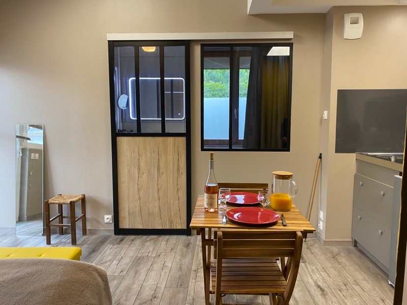 Slakaðu á í þessari rólegu og glæsilegu gistingu í hjarta borgarinnar í Valence, 10 mínútur frá mjög rólegu miðborginni. Villa 48 , það er þrjú glæsileg, rúmgóð og róleg gistiaðstaða til að taka á móti þér í algjörri ró. Íbúð nr.1 er staðsett á 1. hæð með aðgengi í gegnum stiga , þetta tvíbýlishús er með rúmgóða stofu, svefnherbergið er uppi með baðherbergi. Öll þægindi eru til ráðstöfunar .