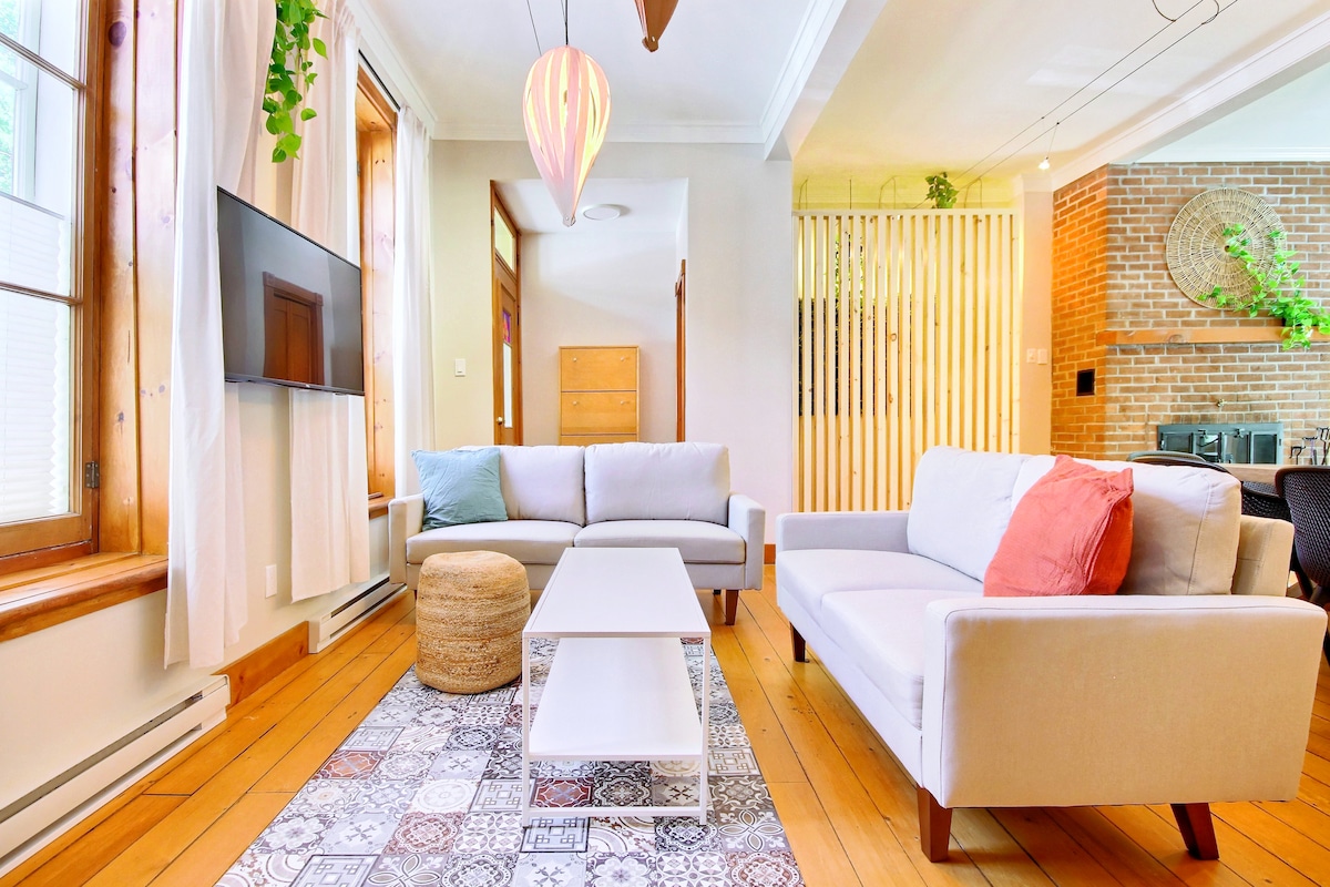 Discover this charming home protected by Quebec's cultural heritage laws. Designed with families in mind, it features a pool and spacious backyard. Located in the heart of Limoilou, it's a short stroll to the vibrant 3rd Avenue and just 8 minutes by car to Chateau Frontenac. Enjoy a furnished kitchen, TV, 2-chair workspace, small gym, AC, hammocks, and a patio with an outdoor dining table. Perfect for your next stay!