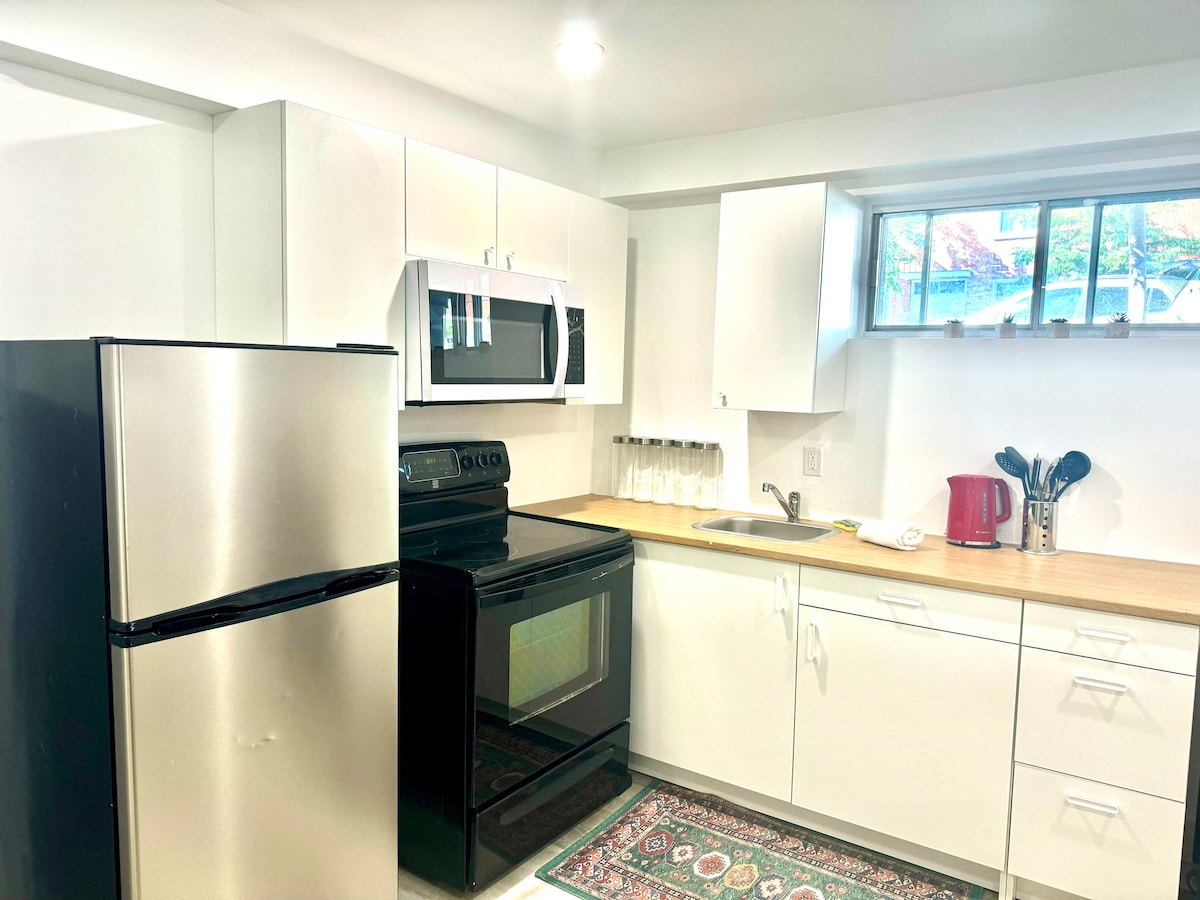 MTL heimili þitt að heiman! Slakaðu á með fjölskyldu/vinum/samstarfsfólki í FULLKOMLEGA uppgerðri, rúmgóðri íbúð. Rólegt íbúðarhverfi nálægt þægindum, samgöngum og umkringt almenningsgörðum. Einkabílastæði utandyra með hleðslutæki fyrir rafbíla fylgir. Nærri Ólympíuleikvanginum/ Biodome/ Jardin Botanique/ Saputo Stadium. Frábær barnagarður/ hundagarður með hindrunum beint yfir íbúðinni. Göngufæri frá apóteki, veitingastöðum, matvöruverslun, bensínstöð, strætóstöðvum.
