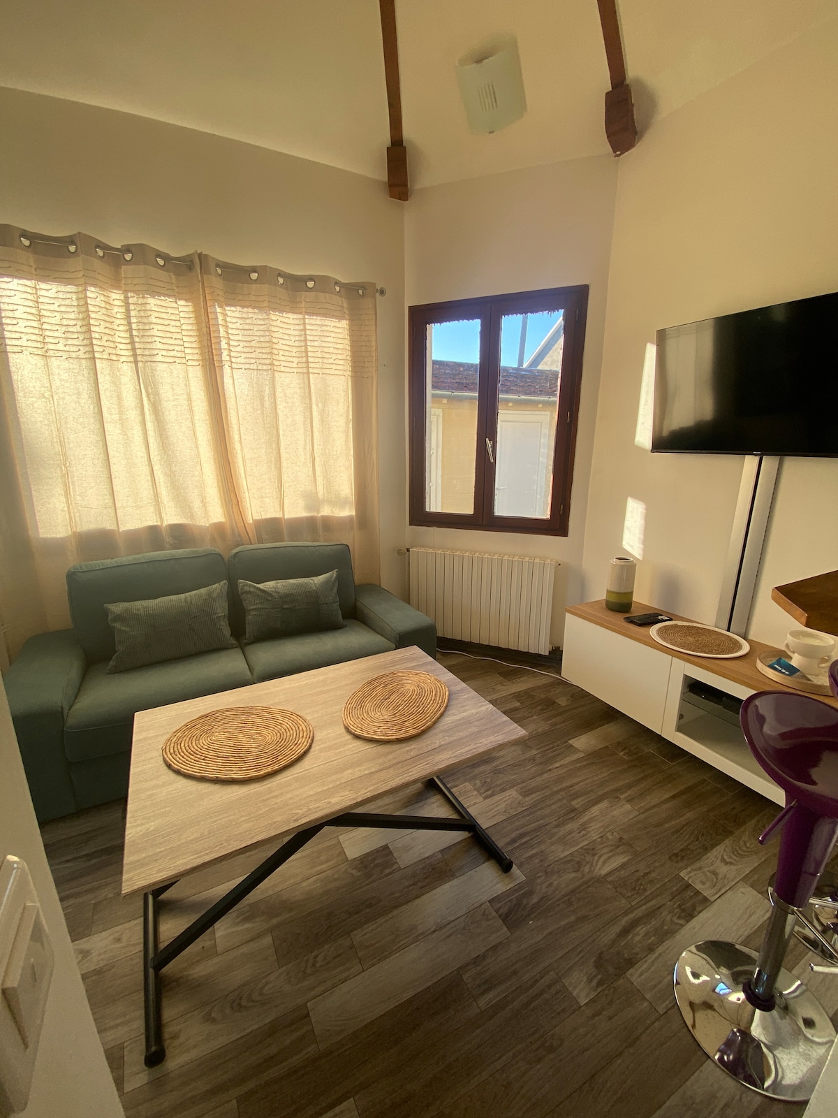 ✨ Þegar draumur rætist Sökktu þér í sætum svipmyndum í hjarta Vernon, nálægt 🚉 lestarstöðinni og 🚌 rútum til Giverny 🌆 Frábær staðsetning 📍 Aðeins 300 metra frá miðbænum og við bakka Signu fyrir gönguferðir 🕯️ Hlýlegt andrúmsloft Fágaðar 🎨 skreytingar, notaleg stemning og stjörnubrotin loft fyrir töfrandi og róandi upplifun 🔥 Rafmagnsarinn ✨ Leyfðu mjúkri ljósi og knitröndum arineldarins að umvefja þig á notalegum og rómantískum kvöldum!