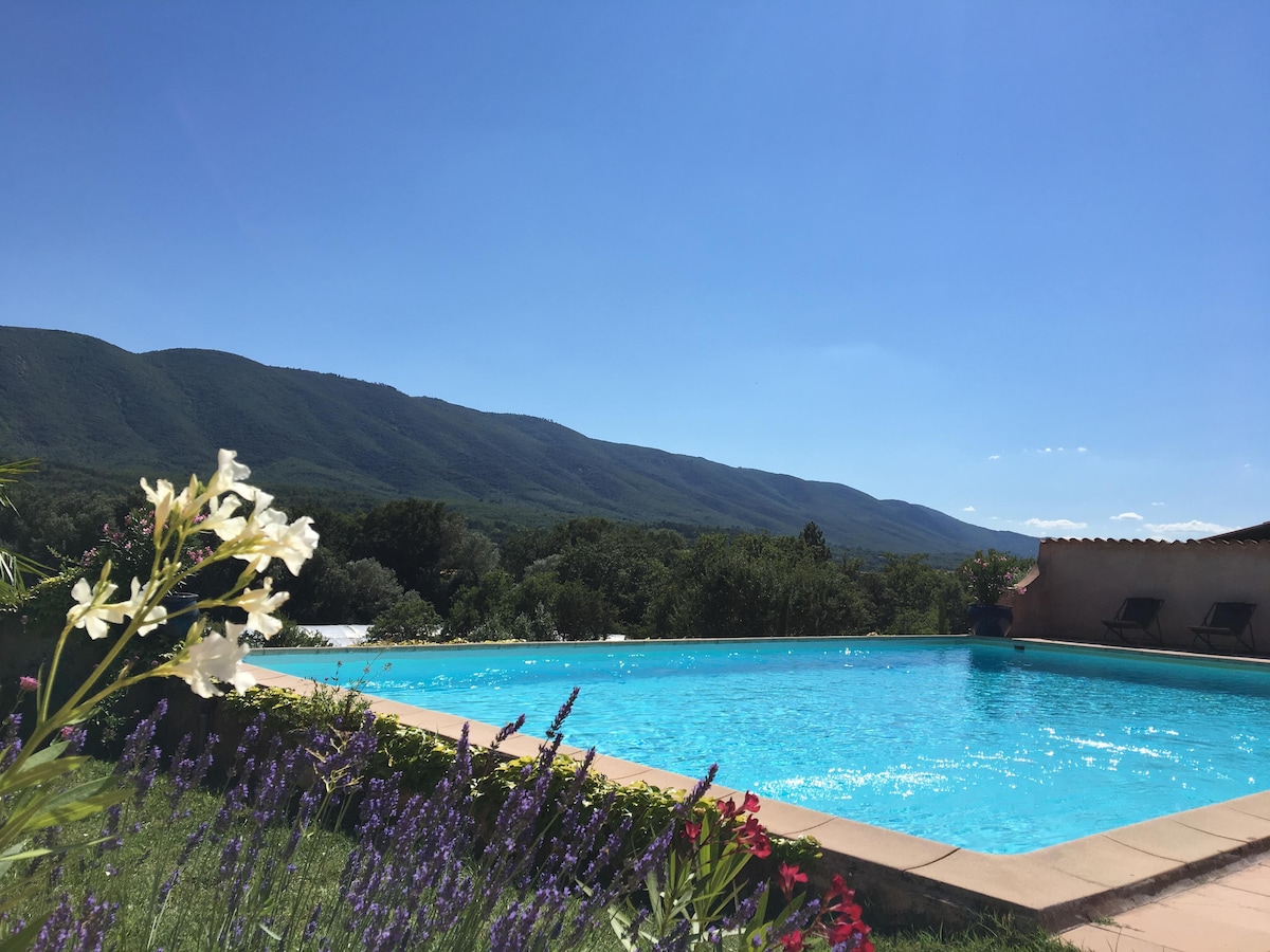Very peaceful property of 5 hectares with breathtaking views of the Luberon hills in Provence, Ideally located between Gorges du Verdon and Colorado Provençal (Roussillon, Rustrel) and Gordes, Lavender fields all around. Truly splendid 12m x 8m swimming Pool Mas des Lavandes : very comfortable and fully air-conditioning provençal house (2 independant bedrooms) 95 square yards, covered terrace, private garden, barbecue, WIFI, parking. Gîte de France 4 épis. Badminton, petanque.