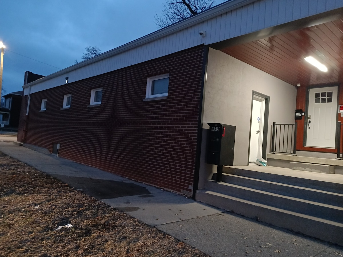 Þessi einstaki staður hefur sinn eigin stíl. Þetta hús er fullbúið með fallega fáguðum harðviðargólfum. Það eru tvö svefnherbergi með queen-size rúmum og nægum geymslum og myrkvunargluggatjöldum. Á neðri hæðinni er þvottavél og þurrkari og leikjaherbergi fyrir börnin. Sófi í stofu getur dregist upp í rúm og það er fúton í leikjaherberginu á neðri hæðinni. Bakgarðurinn er fullgirtur. Nálægt Union Hospital, ISU og mörgum veitingastöðum og verslunum á staðnum.