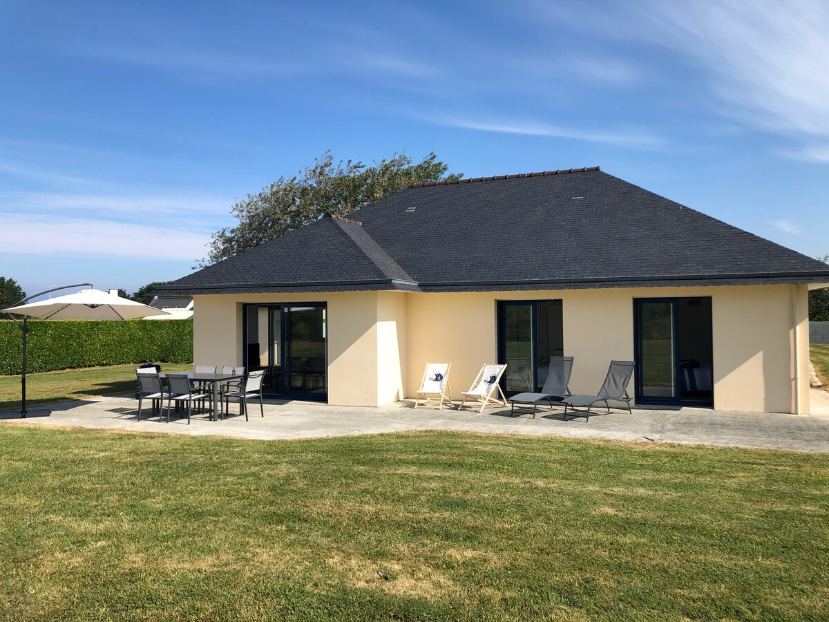 Lítið einbýlishús í 70 m2 5 mínútna göngufjarlægð frá mjög notalegri strönd, húsi á landsbyggðinni, nálægt öðrum híbýlum og býli. Stór strönd með mörgum pollum sem henta vel fyrir börn í sundi. Lokaður garður. Möguleiki á að geyma hjólin undir lyklum ef þörf krefur. Nálægt GR 34, svifflugstöðum. Við inngang Presqu 'ilede Crozon, nálægt Douarnenez, Locronan, Quimper, Brest og Finistère-miðstöðinni. Garðurinn er afgirtur.