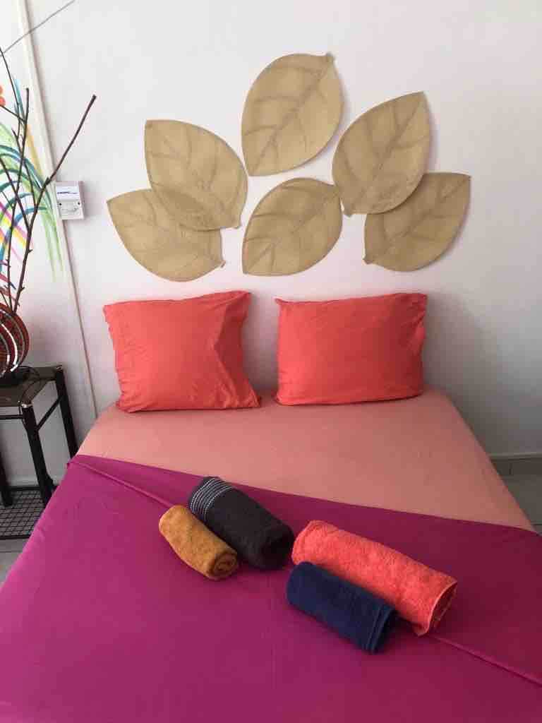 Il s’agit d’une chambre indépendante climatisée de 13 m² + salle de bain douche, w-c soit au total 19 m² Cuisine extérieure avec 1 plaque de cuisson, micro-ondes, évier et ustensiles de cuisine, ainsi que la terrasse et ses équipements : transat, table, chaises et la piscine de 8 ml x 4 ml. Un lit 2 places 1 lit bébé moins de 2ans 1 commode, 2 tables de nuit, un plan de travail, penderie, linge de maison, vaisselle, cafetière électrique, frigo, Wifi gratuit. cuisine partagée