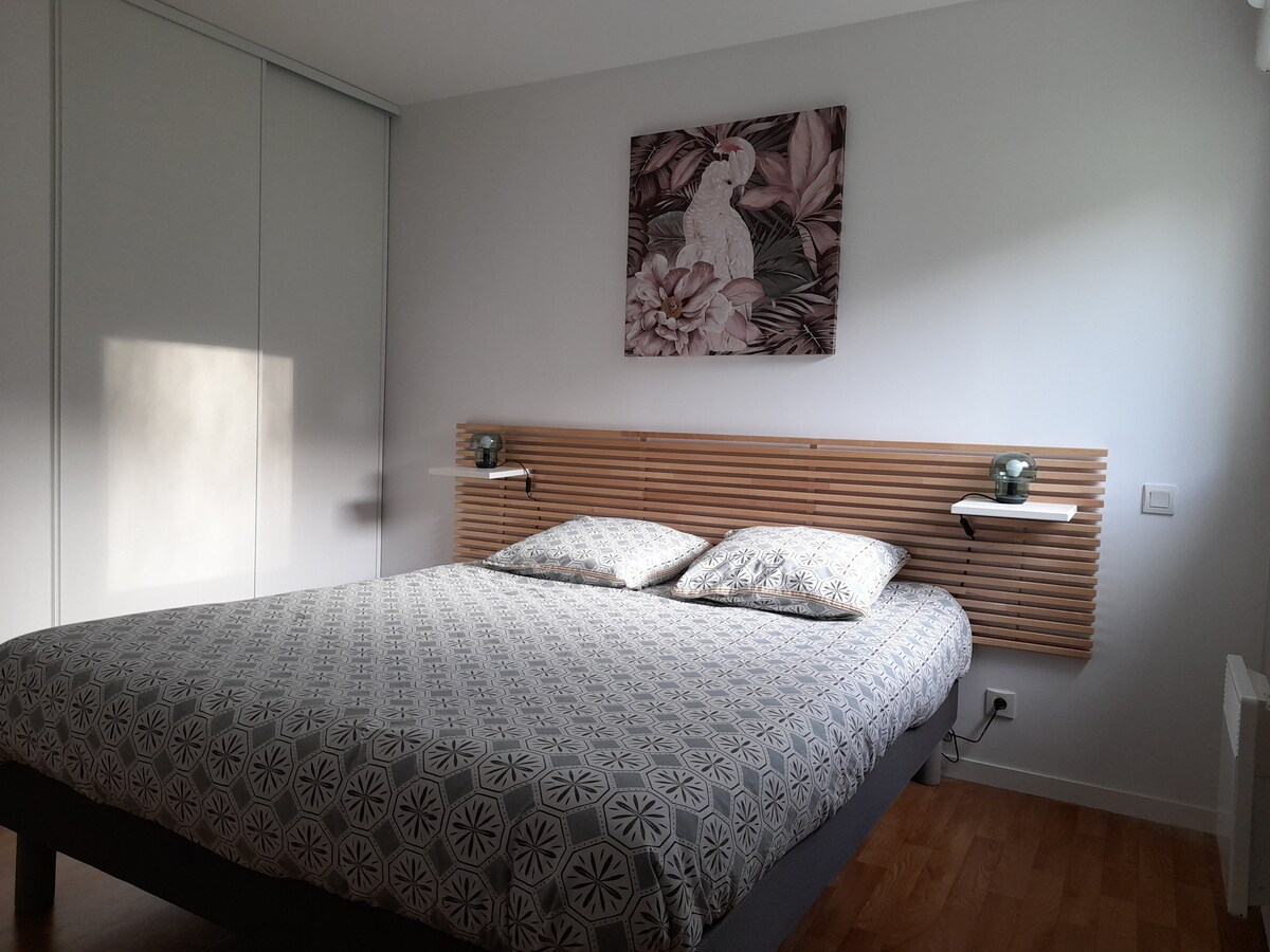 Appartement 1er étage dans résidence neuve, exposition sud/est, comprenant : - Entrée avec placards coulissants ; - Une pièce de vie avec coin cuisine, séjour avec accès balcon ; canapé convertible. - 1 chambre avec placards coulissants. lit queen size. 160x200. confort : ferme. - Une salle d'eau. Volets roulants pour chaque pièce. Tv Vue sur l'avant port.