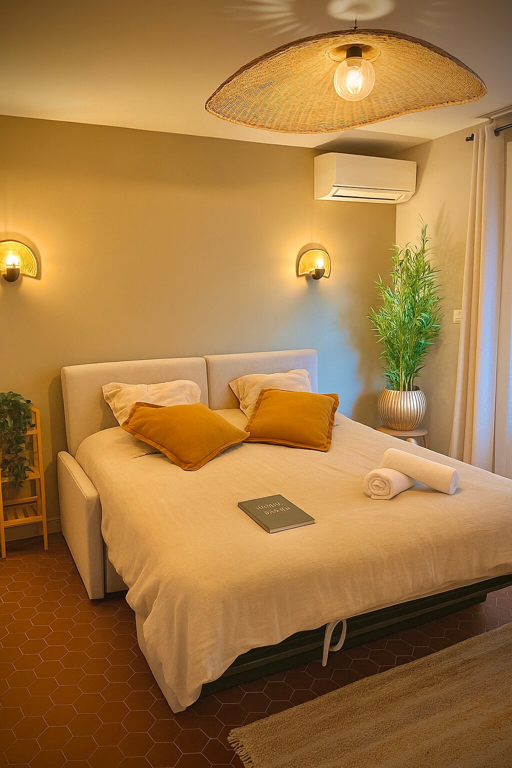 Njóttu stílhreins og miðlægs heimilis. Tvíbýlishús í hjarta þorpsins, við heillandi, flotta og græna götu. Stofa, borðstofa og vel búið eldhús á 1. hæð með fyrsta sjálfstæða svefnherbergi í tvíbýli: 160cm rúm mögulegt 2x80, sturtuklefi, fataherbergi og sjálfstætt salerni. Á 2. hæð er hjónaherbergi með baðherbergi, lítið þvottahús og kirsuber á kökunni, frábær verönd með yfirgripsmiklu útsýni yfir þök þorpsins og kirkjuna.