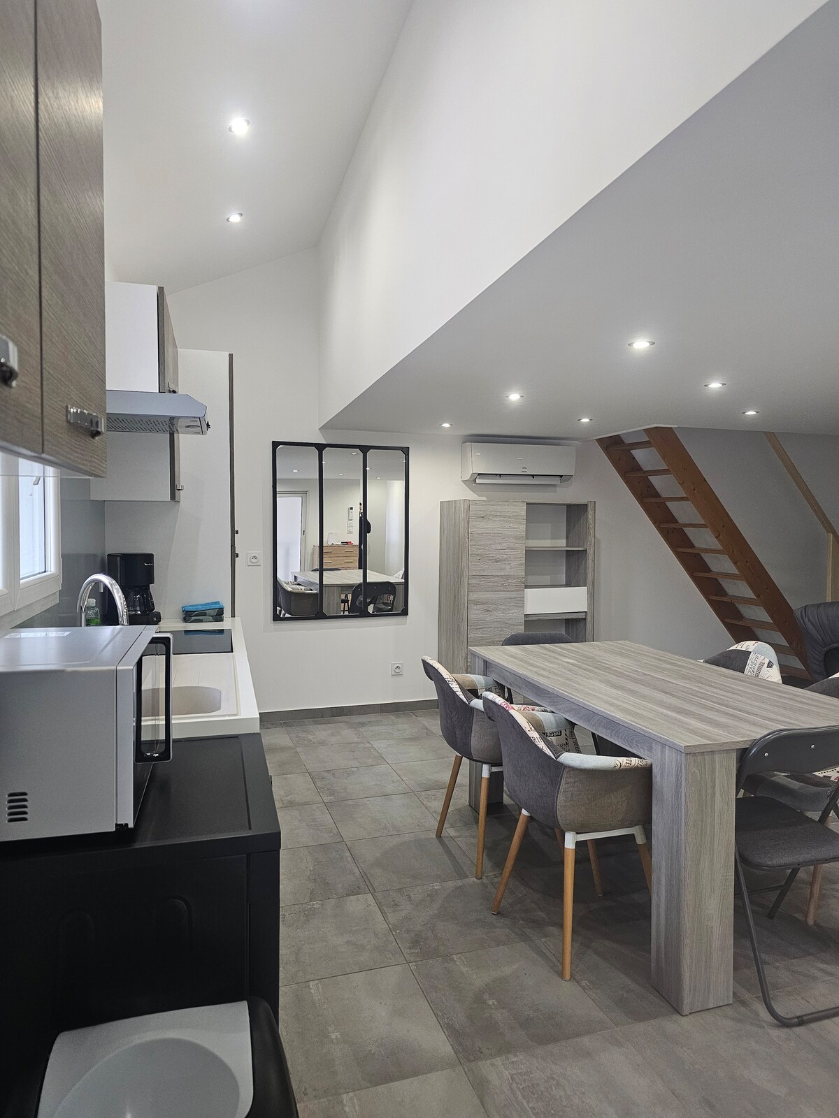 Slakaðu á í þessu rólega og stílhreina rými. Nýtt einbýlishús staðsett í rólegu cul-de-sac og aðgengilegt fótgangandi að fyrstu þægindunum (bakarí, stórmarkaður, apótek, veitingamaður, pítsastaður, hárgreiðslustofa). Þetta gistirými (stúdíótegund) sem hentar tveimur einstaklingum er með aðalrými með mjög góðum blæjusófa (svefn 140x190). Útbúið eldhús og borðstofa með útgengi á verönd. Baðherbergi með salerni. Bílastæði.