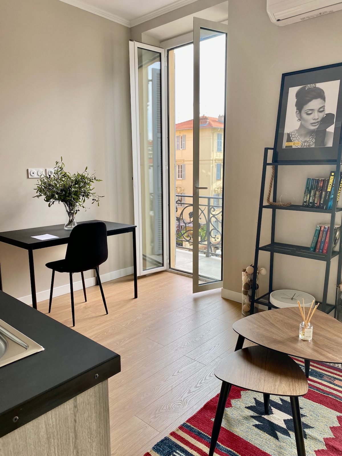 Við inngang gamla Nice nálægt sporvagni númer eitt, yndisleg íbúð með sjálfstæðu svefnherbergi, sólríku og fallegu útsýni sem er dæmigert fyrir gamla bæinn. ➡️ Staðsett á 3. hæð án lyftu, þessi fullkomlega uppgerða íbúð, gæðaþjónusta. Loftkæling, sjónvarp, þráðlaust net. Vel búið eldhús, uppþvottavél, þvottavél, ísskápur, frystir, hefðbundinn ofn og örbylgjuofn. Fullbúið baðherbergi með sturtu, vaski og salerni með aðgengi frá svefnherberginu.