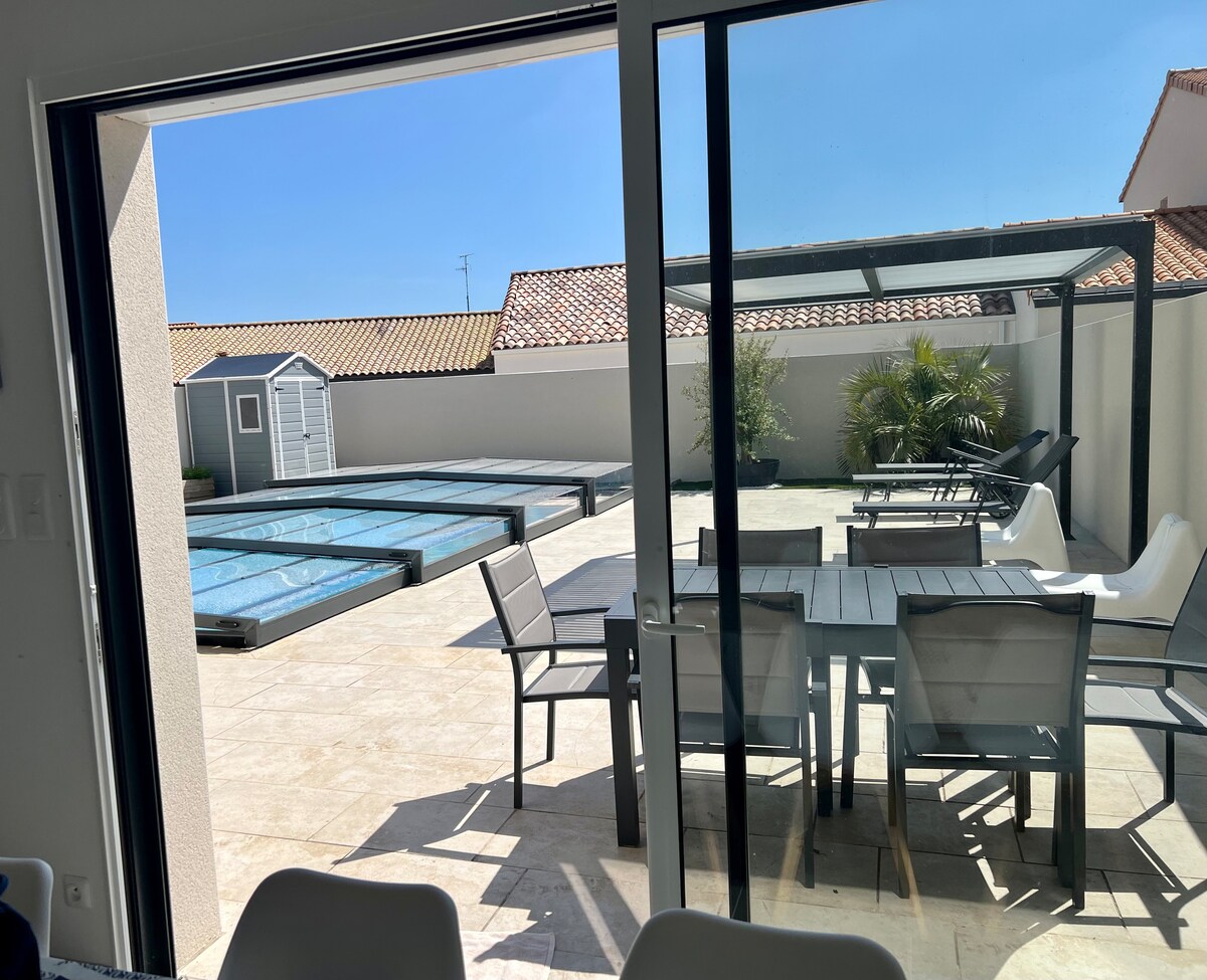 Nútímalegt hús í hlýlegum viði, viðarinnréttingu, stór vinaleg miðeyja. 4 pers+1 bb, möguleiki 2 pers í breytanlegri setustofu aukalega, Rúmin verða búin við komu, EKKI er boðið upp á handklæði. Skjól. Ekkert útsýni. 1700 m frá ströndinni, 600 m frá verslunum. REYKINGAR BANNAÐAR Afgirt land Reiðhjólastígur, Clémenceau, Hippodrome, Talmont Golf, Veillon, Pointe Payré.