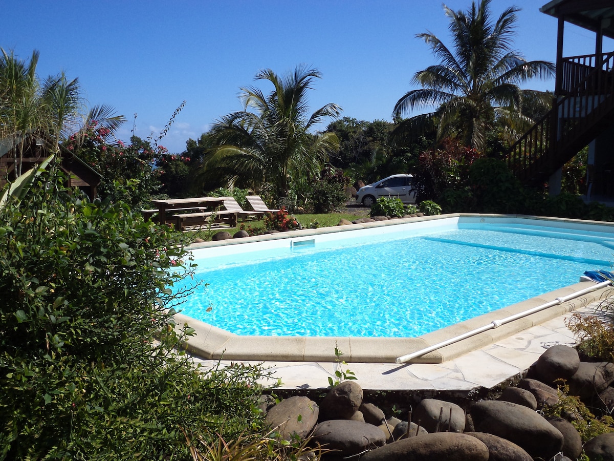 Langar þig í kiff og slappa af? Slakaðu á í þessu einstaka og ósvikna gistirými þar sem er allt sem þú þarft fyrir rólega dvöl. Þetta er fullkomlega staðsett á miðri eyjunni og er fullkominn upphafspunktur fyrir öll ævintýrin þín, gönguferðir... Að giftast vellíðan og ríkidæmi náttúrunnar í Gvadelúpeyjum, kynna lækningaplöntur, staðbundnar vörur, heimagerðar, eru leitmotiv okkar, til að gera þig að upplifun, snúa aftur til náttúrunnar, til sjálfs sín, í öllum einfaldleika.