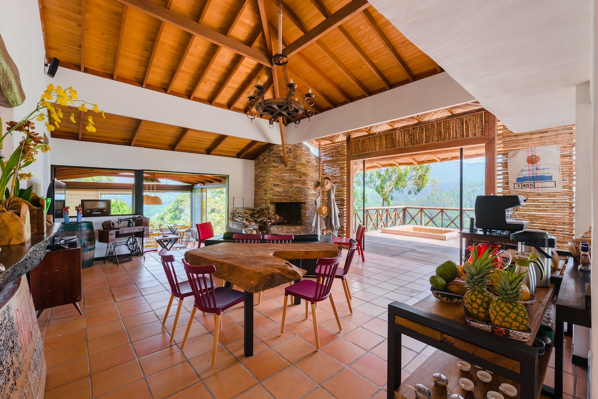 Verið velkomin í Kawa Mountain Retreat! Þetta er töfrandi staður í miðri náttúru Salento þar sem þoka skógurinn í Andesfjöllum, fjallið og áin gefa töfrandi landslagslagi í miðri náttúru Salento þar sem þokukenndur skógurinn, fjallið og áin gefa stórbrotnu landslagi. Við bjóðum upp á alla eiginleika lúxusskála á stað sem fylgir óheflaðri en fágaðri byggingarlist sem byggir á notkun viðar sem hráefni í gegnum handverk sem dæmigert fyrir handverk frá svæðinu. Reiddu þig á okkur til að láta þér líða eins og heima hjá þér á meðan þú nýtur þess besta sem Salento & Cocora-dalurinn hafa upp á að bjóða.