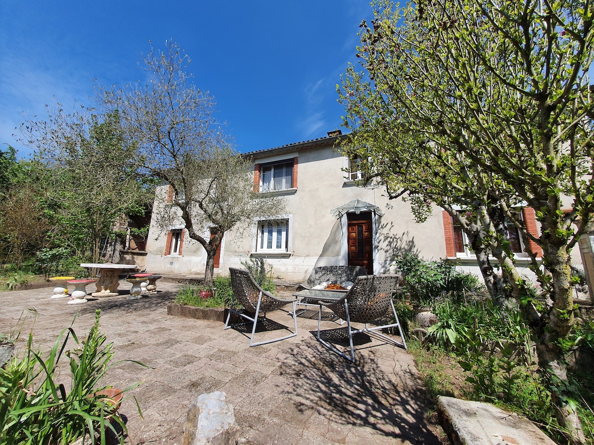 2 mínútum frá Millau, á stórri eign sem liggur yfir með straumi, íbúð sem er 50 M² glæný á 1. hæð í stóru húsi. Húsgögnum ferðamaður flokkaður 3*. Fullgirta svæðið okkar gerir þér kleift að njóta gönguferðanna í almenningsgarðinum og ferskleika lækjarins. Við erum í innan við 500 metra fjarlægð frá verslunarmiðstöð og bakaríi. Beatrice verður þér innan handar eftir samkomulagi vegna orkumikils eða plöntuviðbragða.