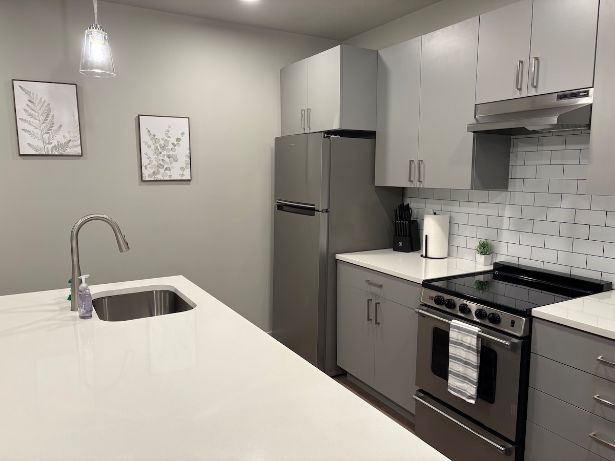 Þessi nútímalega, miðlæga íbúð býður upp á öruggt og þægilegt afdrep í borginni. Njóttu aðgangs að fullbúinni líkamsræktaraðstöðu, þægilegum þvotti í einingunni, logandi hröðu þráðlausu neti fyrir afköst og afþreyingu og notalegri eldgryfju til að slappa af. Þú munt einnig kunna að meta áhyggjur af öruggu aðgengi að byggingunni og ókeypis bílastæði innandyra. Stígðu út fyrir og finndu þig í göngufæri frá verslunum, kaffihúsum og samgöngum í miðbænum. Þetta er fullkomið hvort sem þú ferðast í viðskiptaerindum eða í frístundum!