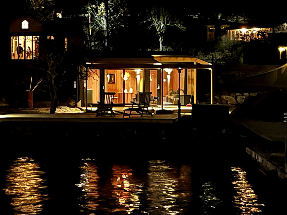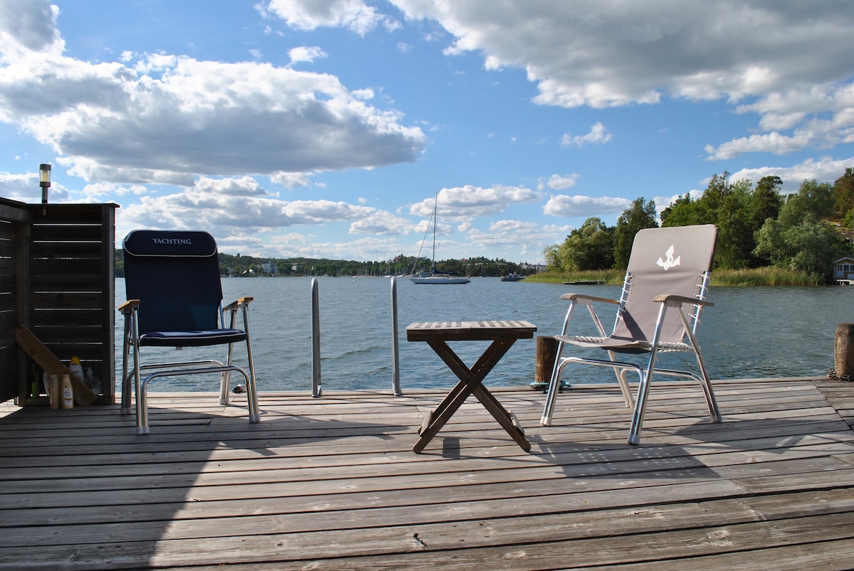 Verið velkomin í þennan bústað með tveimur svefnherbergjum og baðherbergi sem snýr að mögnuðu útsýni yfir eyjaklasann í Stokkhólmi og með einkabryggju til sunds og afslöppunar. Meðfylgjandi fjallahjól, kajaks, gufubað og hottub eru til förgunar fyrir gesti. Hentar pörum eða litlu fjölskyldunni til að njóta afslappandi dvalar við höfnina í Stokkhólmi með náttúruna við dyrnar. Einkasetusvæði fyrir utan bústað með fullbúnu útieldhúsi, grillmöguleikum og útsýni yfir hafið.
