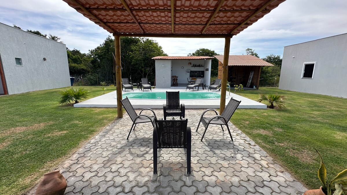 Casa com piscina, quiosque e área verde