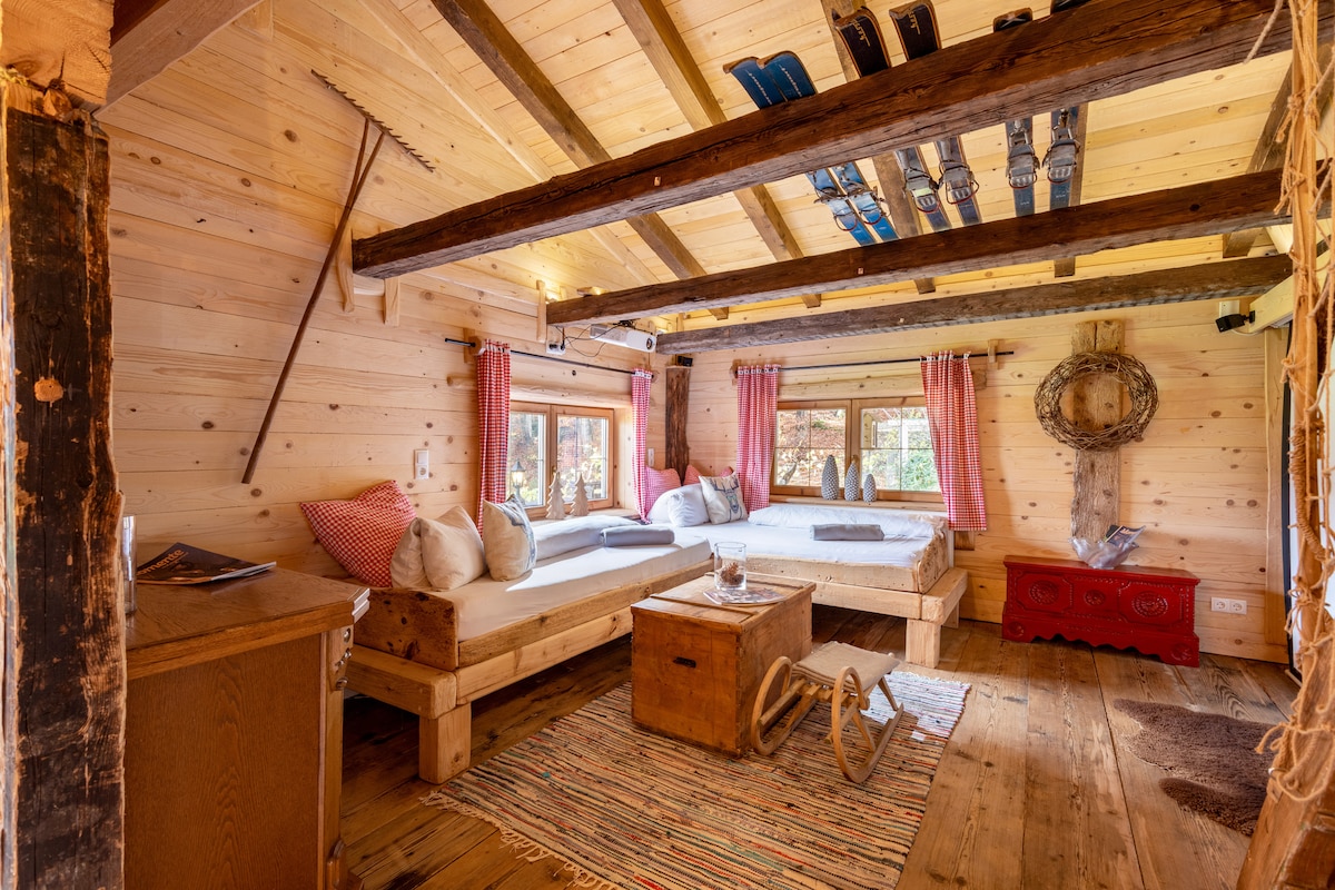 Njóttu fallegra daga í Kaiserhaus með garði og frábæru útsýni til fjalla. 200 ára gamalt tréhús hefur verið fjarlægt nálægt og endurbyggt við hliðina á húsinu mínu. Nýja (gamla) tréhúsið hefur verið endurgert mjög vistfræðilega og uppfært. Kaiserlounge var næstum aðeins fóðrað með gömlum og nýjum viði - þú getur samt séð gamla handverkið. Engu að síður er nútíma eins og skjávarpi, raddstýring Alexu einnig byggð inn. Bílastæði eru í boði.