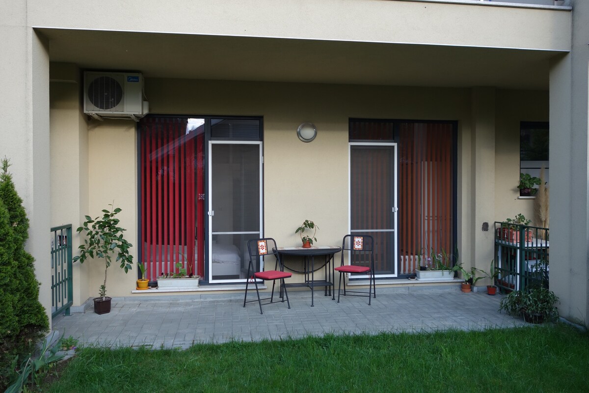 Verið velkomin í glænýju íbúðina okkar sem er hönnuð á skemmtilegan hátt og staðsett við hliðina á stærsta viðskiptamiðstöð Búlgaríu. Þetta rými er friðsælt og litríkt og býður upp á alla þá þægindi sem þú þarft fyrir vinnu- eða frístundarferð til Sófíu. Þú munt njóta þín allt árið í þessari nýuppgerðu byggingu þar sem tveir loftræstibúnaðir eru til staðar fyrir heita sumardaga og miðstýrð hitun fyrir notalega vetrara. Þú getur auðveldlega innritað þig með lyklunum hjá dyrakonunni eða þú getur innritað þig með lyklunum úr lyklaboxinu.