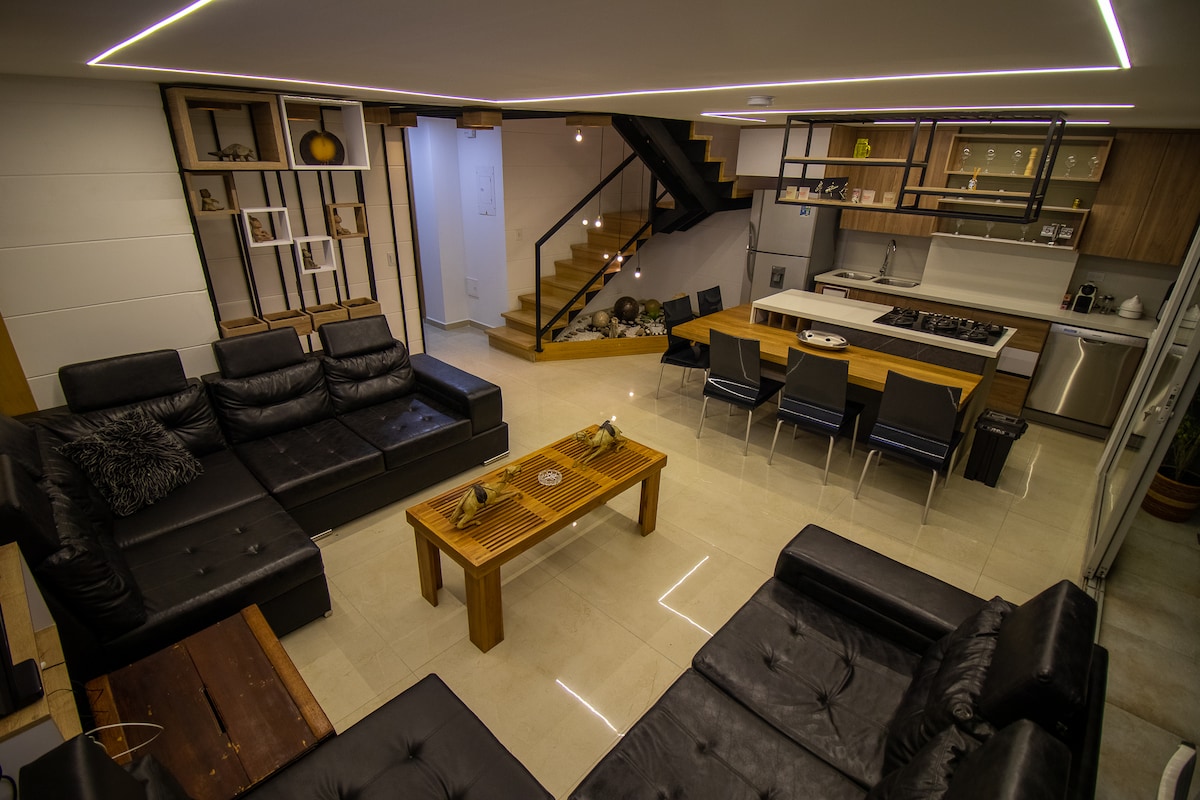 Þetta er ein tegund af íbúð/húsi með öllu sem þig hefur dreymt um að eiga á heimili. Miðsvæðis nálægt öllum bestu stöðunum til að borða og slappa af í Laureles. Íbúðin er 3 svefnherbergi / 3 baðherbergi og er með stórt útisvæði með heitum potti, strandstólum, bbq og lestrarneti. Veröndin er einstaklega hönnuð fyrir gesti til að njóta dvalarinnar þegar hún er í hámarki. Þessi íbúð var hönnuð af nokkrum af bestu arkitektum sem bjuggu til hugmynd með staðbundnu efni og list