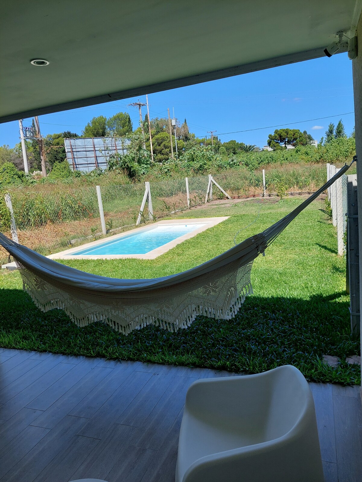 Tilvalið fimmta hús með öllum þægindum, quincho, sundlaug, stór stofa, risastór verönd með miklum gróðri til að vera berfættur og hvílast. ÞÚ GETUR SKIPULAGT FRÍIÐ EINS OG ÞÚ VILT. Rúmgóður staður til að njóta mismunandi umhverfis án áreksturs við 4 veggi. Þú getur lesið bók í sólinni, farið í laugina á meðan þú átt maka þinn, steikt með vinum þínum í quincho, spilað fótbolta með krökkunum eða skipulagt margt fleira.