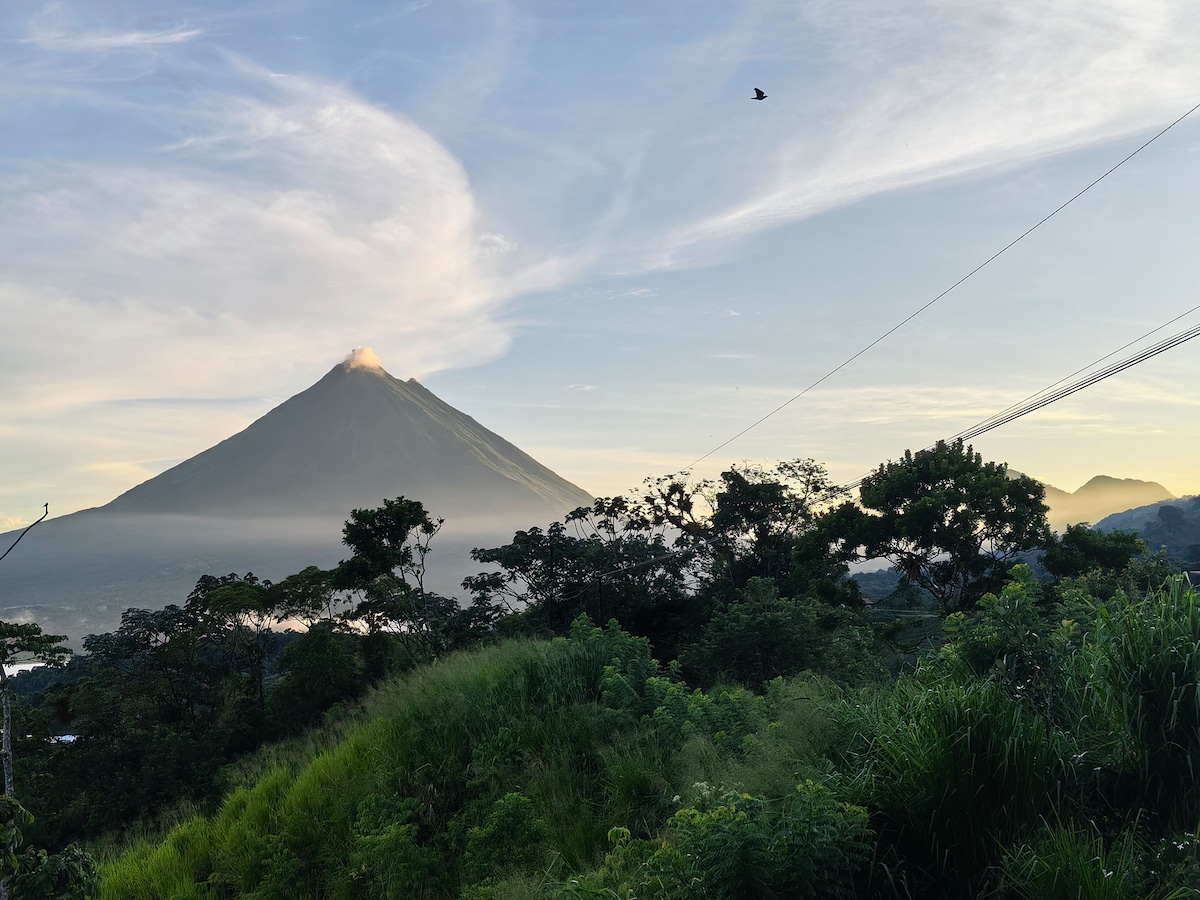 Láttu verða aftur af ástinni í Arenal Love Cottage, rómantísku afdrepi með mögnuðu sólsetri yfir vatninu og sólarupprásum yfir Arenal eldfjallinu. Þetta heillandi afdrep er með einu notalegu svefnherbergi með loftkælingu, snjallsjónvarpi, afslappandi heitum potti, einkasundlaug og fullbúnu eldhúsi til að útbúa uppáhaldsmáltíðirnar þínar. Slappaðu af í rúmgóðu stofunni eða skoðaðu heitar lindir í nágrenninu, fossa, ár, regnskóga, gróður og dýralíf og Arenal-þjóðgarðinn. Paradís bíður þín!