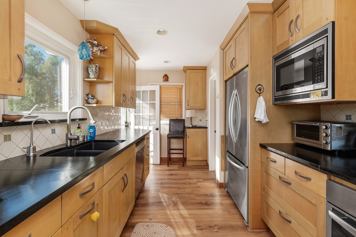 Nýuppgert tvíbýlishús í 2 BR boho-stíl með stóru sjávarútsýnisþili, mikilli lofthæð og stórum bakgarði í skugga bambus- og pálmatrjáa. Svefnherbergi að framan er með sjávarútsýni og aðalsvefnherbergið er með stórum glerrennihurðum með útsýni yfir garðinn. Stór eiginleiki Hope House er glerþilfarið, sérstaklega við sólsetur! Tilvalið fyrir strandferð fjölskyldunnar, brimbrettaferð, stelpuhelgi eða skapandi afdrep. Inniheldur grill, þvottahús, bílastæði, trefjar wifi, nýtt 50" snjallsjónvarp með Netflix og Amazon Prime.