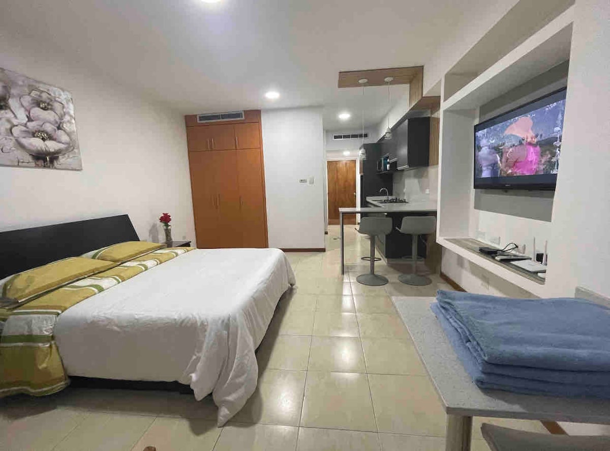 Lúxus og þægileg íbúð á besta svæði borgarinnar með öllu sem þú þarft og gerir ráð fyrir þægilegri og notalegri dvöl. - Ókeypis bílastæði, öryggisgæsla allan sólarhringinn og eftirlit. -100% vatns- og orkuver með varaorku á öllum svæðum. - Verslanir, apótek, veitingastaðir, almenningsgarðar og heilsugæslustöðvar í nágrenninu. - Kapalsjónvarp (EINFALT sjónvarp) - Einkaplata fyrir afskekkta trajano. - Gervihnattanet. - Queen-stærð og svefnsófi.