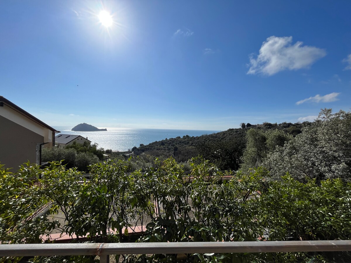 Tveggja herbergja íbúð sem samanstendur af svefnherbergi með hjónarúmi, stofu með eldhúskróki og baðherbergi. Nýlega innréttað. Búið til með sér inngangi að villunni, stórri verönd með útsýni yfir hafið, einkabílastæði og loftkælingu. Hægt að ná í miðborgina á 10/15 mínútum að fótum. Ókeypis þráðlaust net og 2 ókeypis kaffibollar á dag fyrir hvern einstakling. Í BOÐI FYRIR VIÐSKIPTAVINI MEÐ GÓÐA AKSTURSREYND AÐ VESPA MEÐ 2 HJÖLMI, ÁN AUKAGJALDS! NIN: IT009001C2WGAKBNS7
