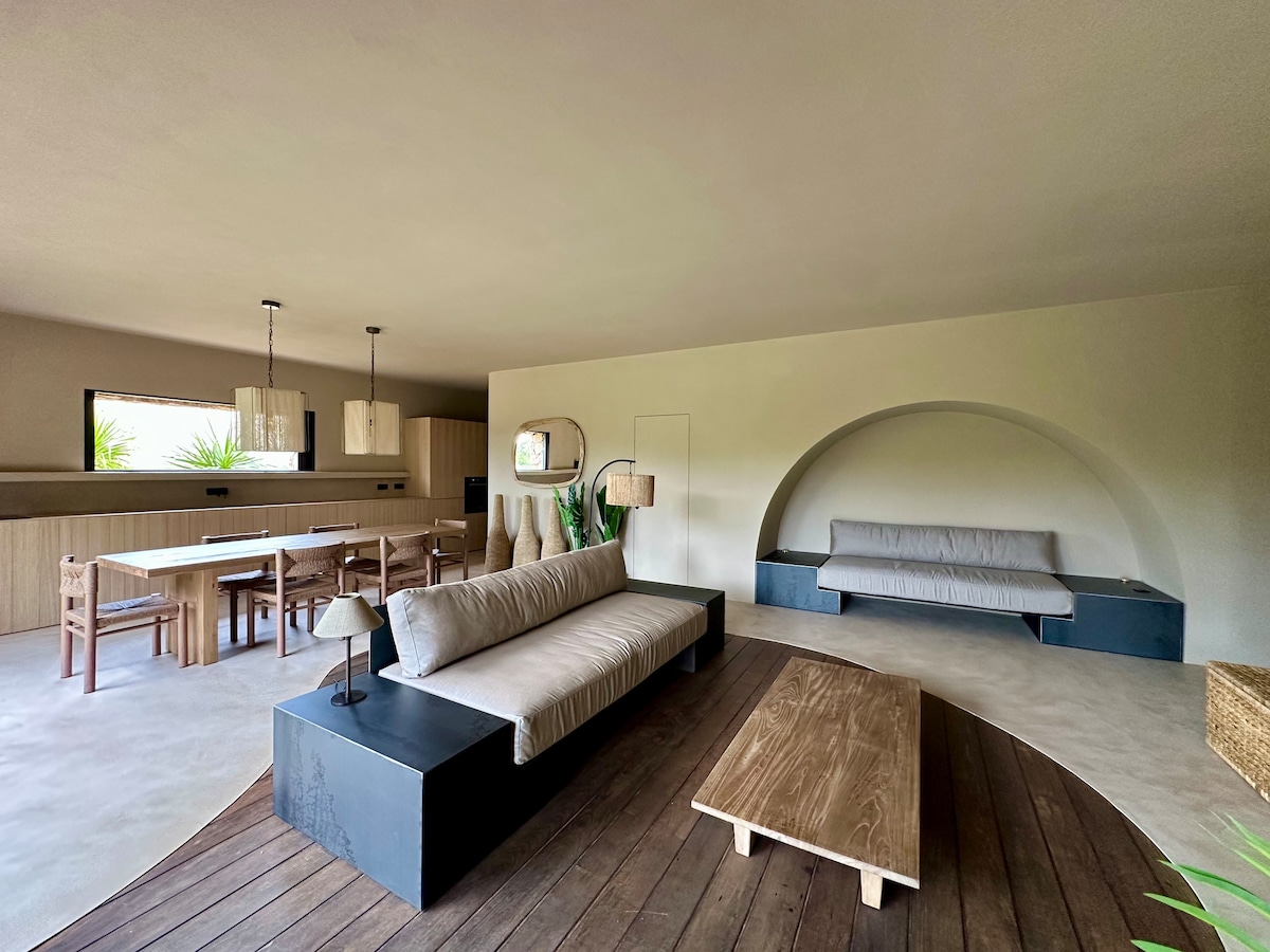 Villa á einni hæð 210m² loftkæling. Stór örugg og upphituð sundlaug með strandlaug. Ný björt villa, fíngerð þægindi í einka og rólegu búi, mikil stofa 100 m2. 4 svítur sem allar eru með loftkælingu og baðherbergi með öllum einkaveröndinni, þar á meðal 2 með útsýni yfir sundlaugina. Stór verönd með hvíldarsvæði á lokuðu og skóglendi. Villa búin með WiFi og gervihnattasjónvarpi. Leiga frá laugardegi til laugardags!