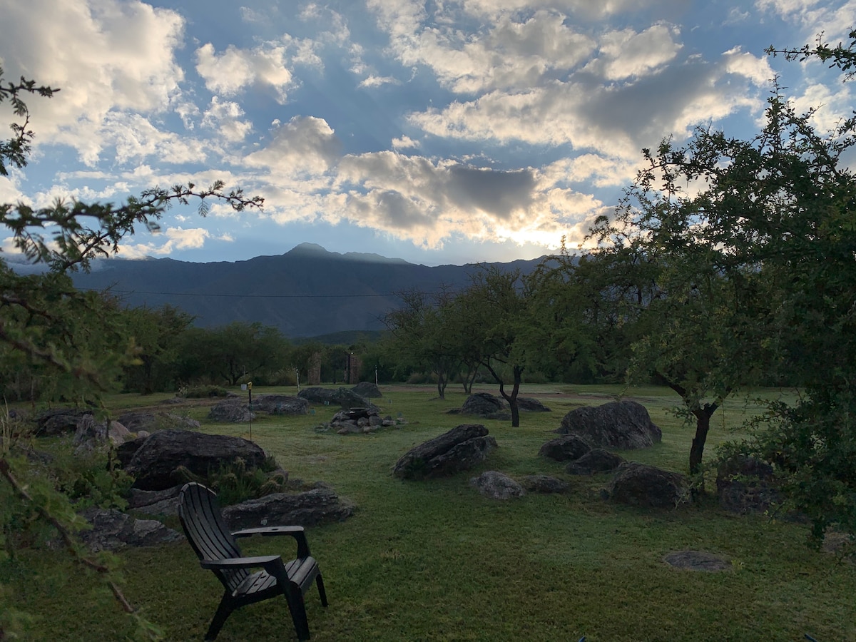 Framúrskarandi útsýni til dalsins og hæðarinnar. Fjölbreytt sólsetur. Draumkennt næturútsýni Vetrarbrautarinnar. Rólegur og öruggur. Einstakur staður með miklum friði og orku sem vekur skilningarvitin með því að endurlífga þig Staðsett í næsta bæ við topp Cerro Champaqui Hæsta Sierras Grandes de Cordoba. Í eign hins fræga „Loteo Lomas del Champaqui“ 400 metra frá Arroyo Hondo 6 km frá Villa Las Rosas þar sem hin fræga handverkssýning fer fram 8 km frá San Javier.