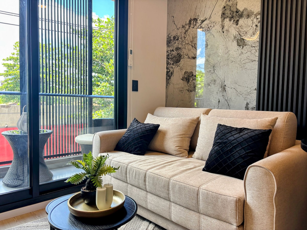 Modern and bright one-bedroom apartment, located a few blocks from Shopping del Sol and Paseo La Galería. 10 minutes from the airport. Enjoy a carefully-decorated space with an open-plan living room, a kitchen equipped with high-end appliances, and a balcony with city views. The bedroom features a queen-size bed, warm lighting, and air conditioning throughout the entire unit. Perfect for short or long stays, with easy access to major shopping centers and restaurants.