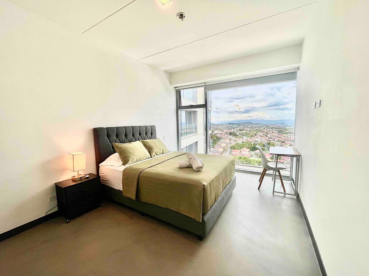 Luxury apartment with A/C, cozy, and perfectly located in the heart of the city. This fully equipped space, with modern and elegant decoration, offers you the freedom to live safely and comfortably while exploring everything the city has to offer. Close to tourist attractions, banks, supermarkets, and restaurants. (The condominium has 8 restaurants within the facilities) The International Airport (SJO) is 20 minutes away, La Sabana Park and the new National Stadium are 3 min away in San Jose.