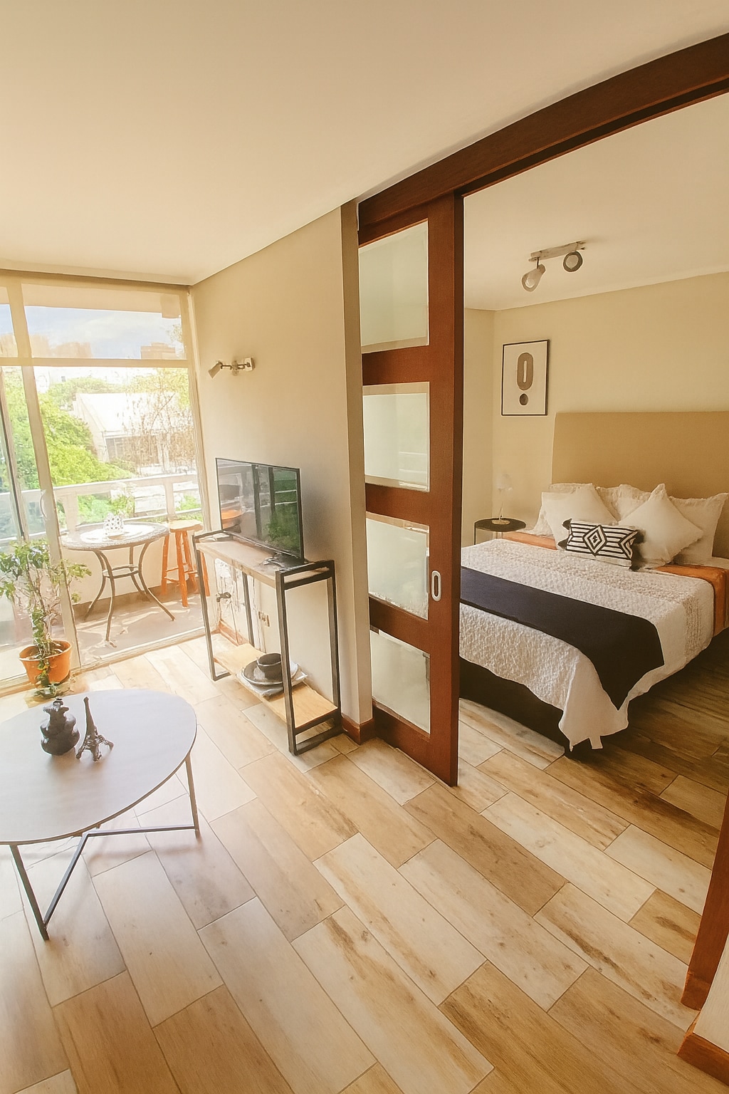 Único y encantador. Cama King, AC/calefacción, terraza, TV 360°, WIFI, estacionamiento gratuito. Quinchos con vista panorámica, sala de pool, co-work, piscina al aire libre (sólo en temporada) y más. ¡Ubicación fantástica! Para los amantes de la nieve, arriendo de equipos, buses de acercamiento y tours a menos de 400mts. Cuenta con entrada a autopistas, locomoción colectiva, supermercados, restaurantes, bencineras, farmacia 24 hrs, parques y malls.