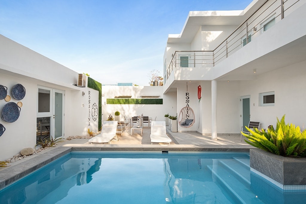 Rosalina Ocean Park is a bright, modern boutique hotel in the heart of Ocean Park, San Juan. With 19 unique units, two shared pools, and a peaceful courtyard, it's the perfect place to unwind after a day of sun and culture. Just minutes from Ocean Park Beach, Calle Loiza, and Condado. Whether you're here to relax, explore, or both, you’ll feel right at home. 🛎️ Please read the full description before booking.