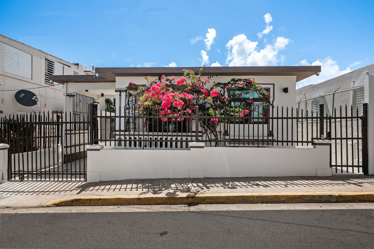 Þetta risastóra, fallega nýlenduhús er staðsett við Caoba 25 í örugga hverfinu Punta las Marias í San Juan og er með eigin einkasundlaug . Í húsinu eru 3 næg eldhús, þægileg rúmföt, snjallsjónvarp, ÞRÁÐLAUST NET (1k mbps), þægileg baðherbergi og nauðsynleg áhöld og þægindi fyrir dvölina. Eignin er einnig með verönd og grill í bakgarði og þú verður í nokkurra húsaraða fjarlægð frá Punta las Marias ströndinni sem tengist Ocean Park ströndinni! Við erum með 2 Tesla rafhlöður og Diesel Generator