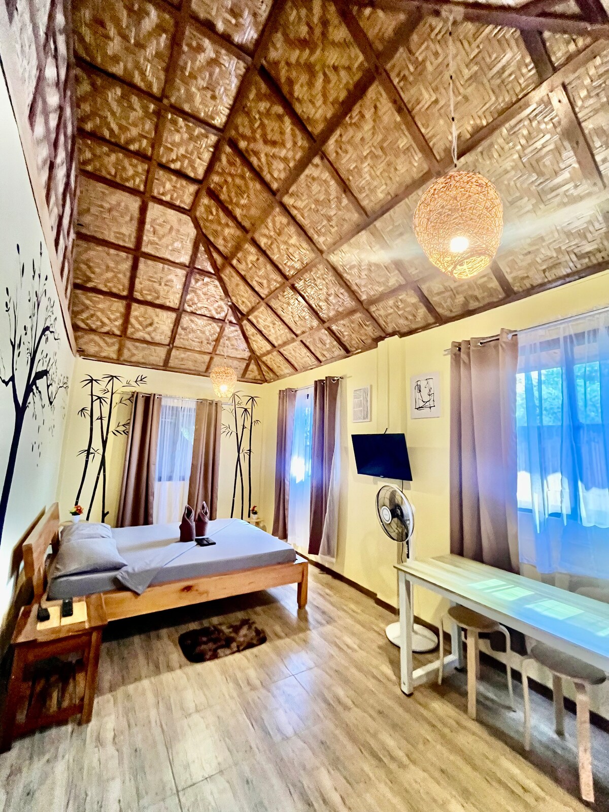 Hitabelti, gestahús með einu svefnherbergi og svölum. Hluti af 3 gistihúsum Í hjarta pálmagarðsins. Þetta gestahús er friðsælt athvarf, umkringt gróðri mínum, sem veitir fullkomið afdrep til að hvílast og slaka á eftir heilan dag af skemmtun í sólinni og skoða hina dásamlegu eyju Siquijor. Njóttu morgunkaffisins á blæbrigðaríkum, gróskumiklum garðsvölunum. Þægilegt svefnherbergi með úthugsuðum innréttingum.