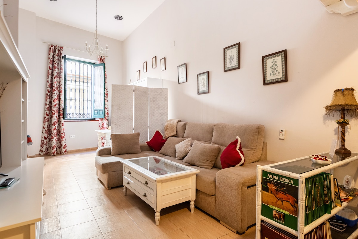 Skráð í Andalusian Tourism Registry VFT/SE/00034 and rental registration number ESFCTU000041029000802893000000000000VFT/SE/000349. Þægileg og notaleg íbúð í miðri Sevilla, við hliðina á Calle Feria og Alameda. Líflegt og ekta hverfi. Minna túristalegt, mjög rólegt og öruggt. Það er staðsett í mjög rólegum, hefðbundnum húsagarði þar sem íbúar á staðnum búa. Vinsamlegast sýndu umhverfinu virðingu, bæði innan og utan íbúðarinnar.