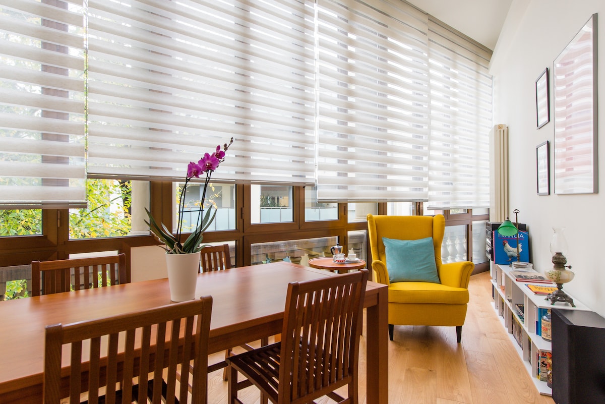 Lúxusíbúð í tímabundinni villu nokkrum skrefum frá miðborginni með einkabílastæði og gróskumiklum garði með fáum nágrönnum. Þetta rúmgóða, nýlega uppgerða rými er smekklega innréttað með listaverkum og minnismerkjum frá Fratellini-fjölskyldunni, þekktum sirkuslistamönnum síðustu aldar. Hún er í umsjón Christian, reynds gestgjafa og arftaka Fratellini-fjölskyldunnar, og Beatrice, sem er arkitekt og sjálfboðaliði í samfélagsleiðtoga Airbnb, sem hafði einnig umsjón með innanhússhönnuninni.