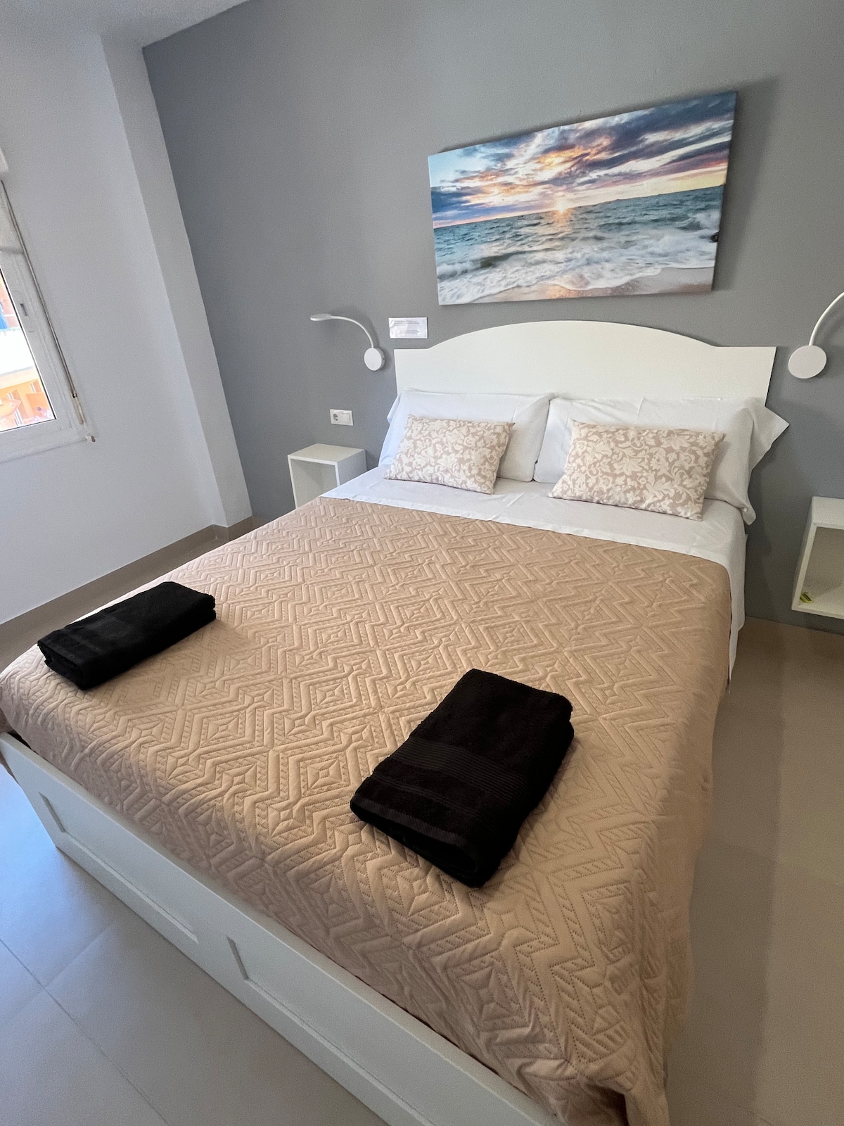 Njóttu upplifunar í þessu gistirými við sjávarsíðuna, mjög þægilegt og með greiðan aðgang að opinberri þjónustu. Staðsett 40 metra frá göngusvæðinu og ströndinni. Fyrsta hæð með lyftu og útsýni yfir aðalgötuna og Plaza De la Iglesia. Tilvalið fyrir tvo fullorðna og einn ólögráða einstakling (fyrir þrjá fullorðna getur það virst mjög sanngjarnt) Rúmgott andrúmsloft með fullbúnu eldhúsi, hjónarúmi og svefnsófa. Loftræsting og hiti. ÞRÁÐLAUST NET. Einkabílastæði 400metrar.