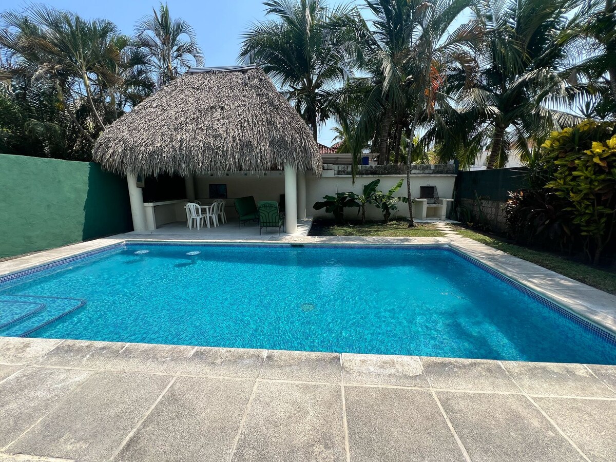Beach hús 100 metra frá sjó, með stórri sundlaug (11 metra löng) með fersku vatni. **INNRITUN kl.10: 00 - ÚTRITUN kl. 15:00 ** Svefnherbergi með A/C, fullbúnu eldhúsi og einkabílastæði. Húsið er dreift og afhent ásamt hreinum rúmfötum og koddum. Hér eru engin rými sameiginleg með öðru fólki. Lág ökutæki geta farið inn án vandræða. Staðsett á 5 km vegi til Monterrico, yfir brúna frá Iztapa til Monterrico.