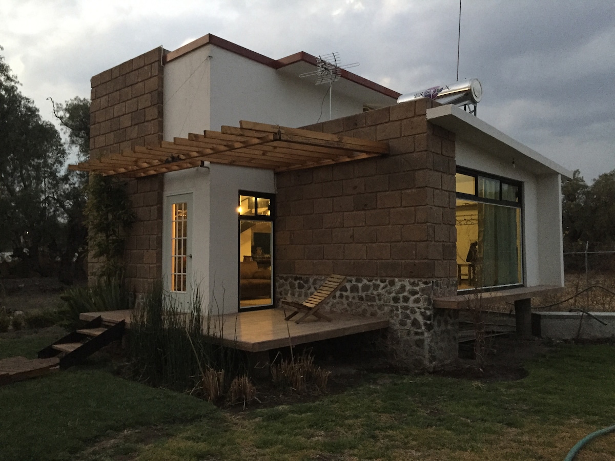 Það er staðsett í þorpinu San Martín de las Pirámides og þar eru stórir garðar, upphituð laug 26 gráður (getur verið breytileg eftir veðurskilyrðum) tvær litlar verandir þar sem þú getur notið sólarupprásarinnar með himni sem þakinn eru mögnuðum loftbelgjum. Komdu og njóttu nokkurra daga kyrrðar og mikillar orku í ótrúlegu og tilkomumiklu pýramídunum sem eru í tíu mínútna akstursfjarlægð frá þessum stað. Ekki hugsa um það og heimsækja okkur.