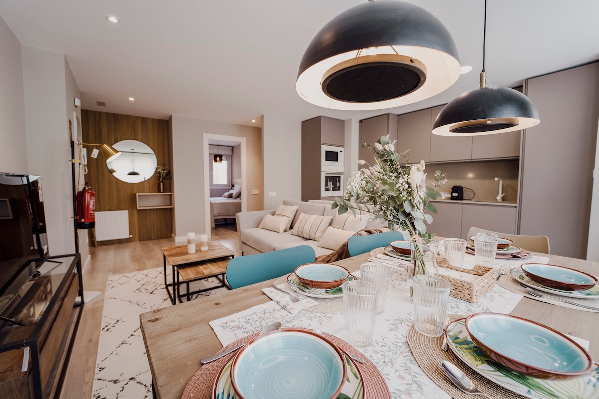 50 metra frá Príncipe Felipe Auditorium, 55 fermetra íbúð, með 1 svefnherbergi með hjónarúmi 150 x 190 cm og skrifborði fyrir fjarvinnu, stofu-eldhús, með svefnsófa fyrir tvo, mjög stórt fullbúið baðherbergi og verönd með borði og stólum. Ítarleg endurnýjun og fullbúið. Hún er með hröðu þráðlausu neti og tveimur snjallsjónvörpum, 55" í stofunni og 32" í svefnherberginu. Bílastæði í salnum eru í 70 metra fjarlægð og þau bjóða upp á mjög gott verð fyrir dvöl í 2 nætur eða lengur. 2 LYFTUR