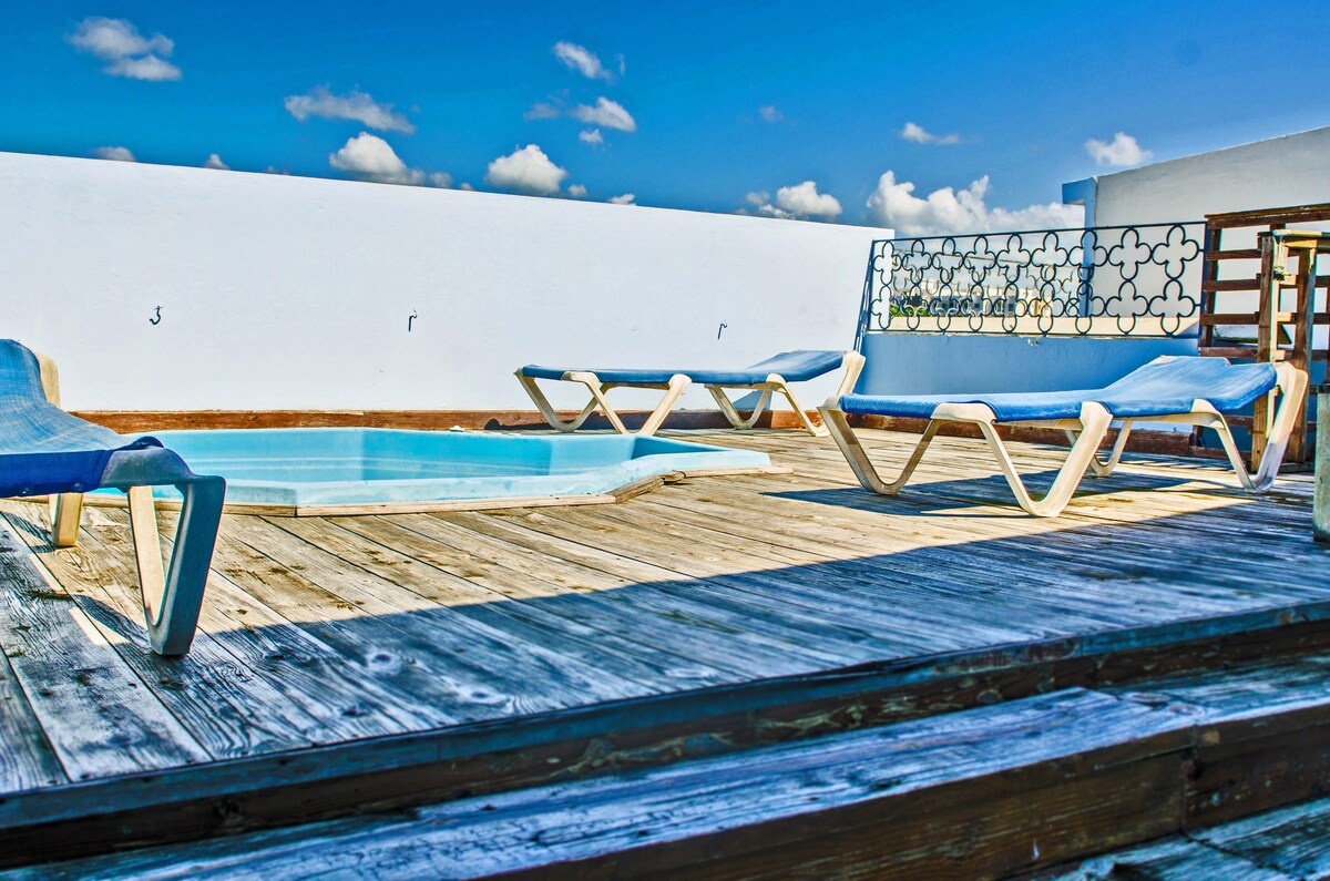 Apartahotel con 14 Apartamentos de 2 camas individuales, 1 Penthouse con terraza, con 2 habitaciones dobles y un jacuzzi para uso exclusivo. Todos completamente amueblados, Televisión, Cocina Completa, Comedor, Baños, Aire Acondicionado, Abanicos de Techo, Calentador de Agua, Zona Wi Fi (Gratis) y 3 Habitaciones de una cama, Televisión, Aire Acondicionado y Baños.