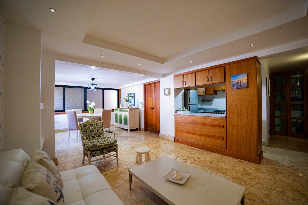 Verið velkomin í fríið við ströndina í Juan Dolio! 🌴🌊 Verðlaunað lúxus: Kafaðu inn í þægindin í íbúðinni okkar sem hlaut verðlaunin TripAdvisor 2025 Travellers 'Choice, staðsett aðeins nokkrum skrefum frá töfrandi Juan Dolio-ströndinni. Lúxus tveggja svefnherbergja, tveggja baðherbergja íbúðin okkar er tilvalin fyrir orlofsgesti sem elskar sandinn milli tánna og vindinn í hárinu. Hún rúmar sex manns og býður upp á paradísarsneið með nútímalegu ívafi.