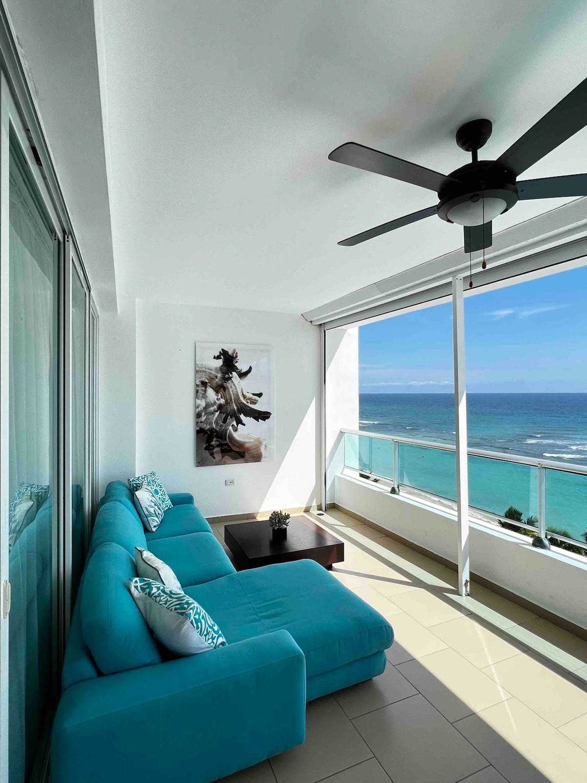 Ven a disfrutar con toda tú familia de este hermoso apartamento, espacioso con una hermosa vista al mar, con hermosa playa todo acondicionado, con área de juegos al aire libre para los niños, piscina, área dé ping-pong, restaurante privado, también cuenta con un excelente teatro en casa con pantalla gigante para ver películas o lo que deseen. La habitación principal cuenta con televisión , las 3 habitaciones Tiene Bańo privado.