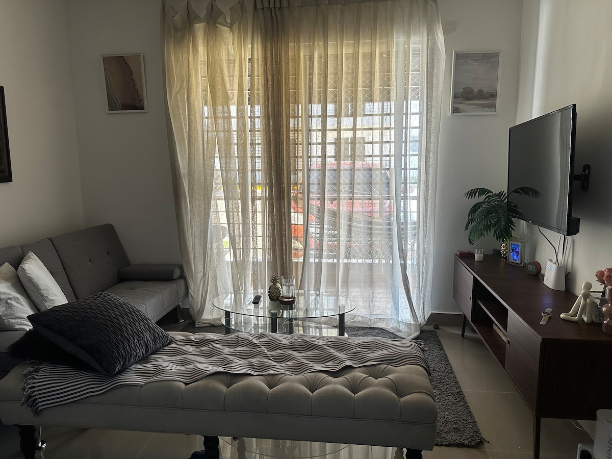 Falleg og rúmgóð 2 herbergja íbúð fullbúin til að gefa þér bestu reynslu í Juan Dolio, það hefur notalegt herbergi með stórkostlegum stórum húsgögnum og 75"sjónvarpi með hljóðbúnaði til að njóta eins og kvikmyndahús af uppáhalds kvikmyndum þínum og röð. Þar eru einnig hágæða amerískar dýnur sem tryggja góða hvíld. Það er staðsett frá ströndinni í 2 mínútna göngufjarlægð. Við erum með úrval af 8 borðspilum.