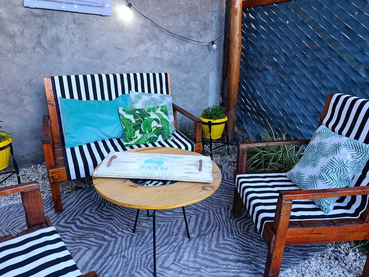 Ég bjó í heimakassanum 🚀🚀 Skálinn okkar hefur verið byggður á grundvelli endurunnins sjógámar sem er sambyggður náttúrunni. Að bjóða einstaka upplifun fyrir þá sem heimsækja okkur. Eignin okkar er þægileg og nútímaleg. Gestir okkar geta notið garðsins með fallegu útsýni og litlu lóni. Það er staðsett í 5 mínútna fjarlægð frá flugvellinum, í 10 mínútna fjarlægð frá hjarta San Rafael og í 15 mínútna fjarlægð frá lónunum El Tigre og Los Reyunos.