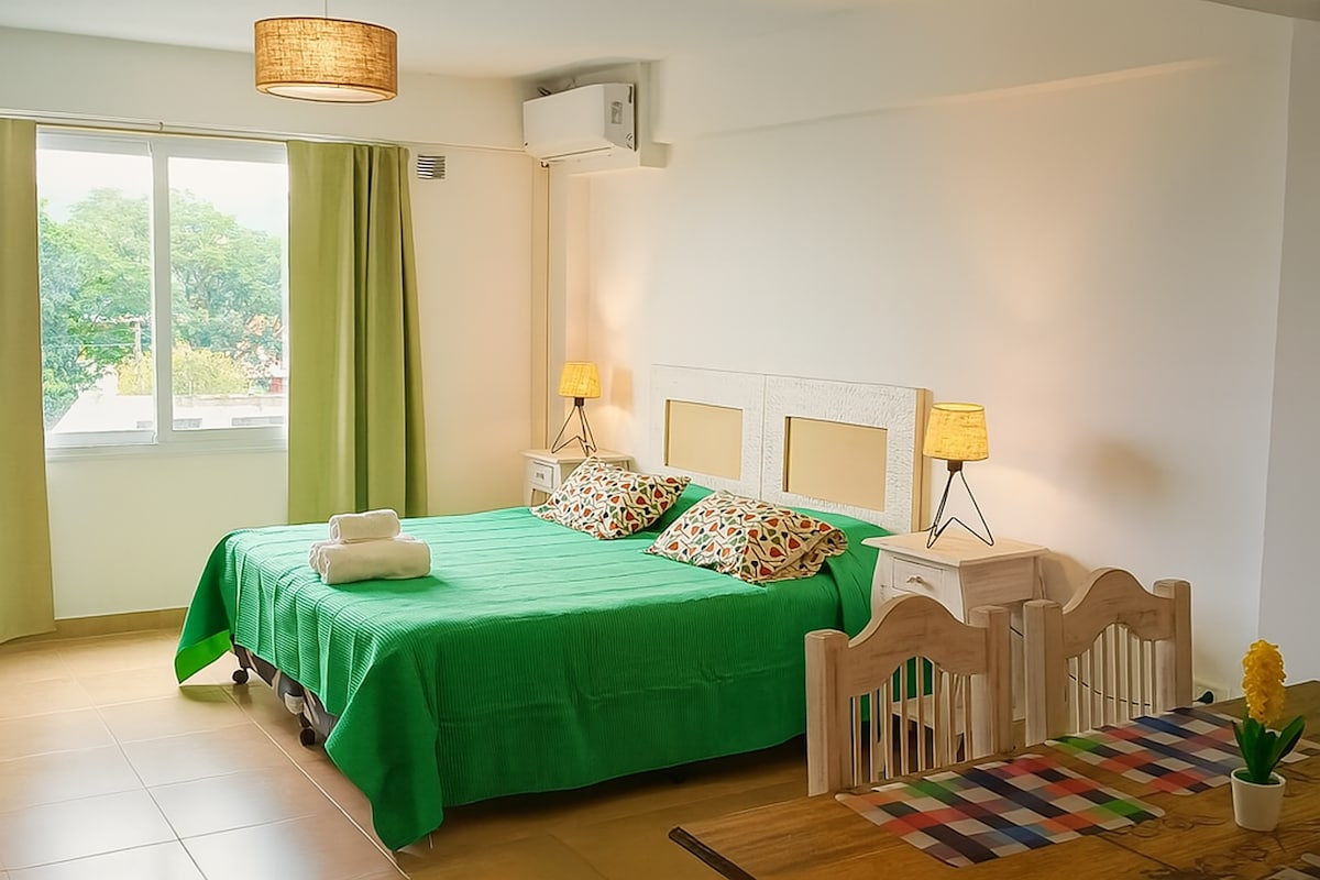 Imaginá despertarte mirando los cerros y el cielo azul. El departamento es amplio y luminoso, donde duermen cómodamente hasta 3 personas con una cama y un sofá cama. Equipado con TV, Wifi, aire acondicionado y un balcón. Si tenés cualquier tipo de dudas sobre el depa o servicios, consúltame antes de reservar ya que todos tenemos dudas al momento de preparar un viaje.😄