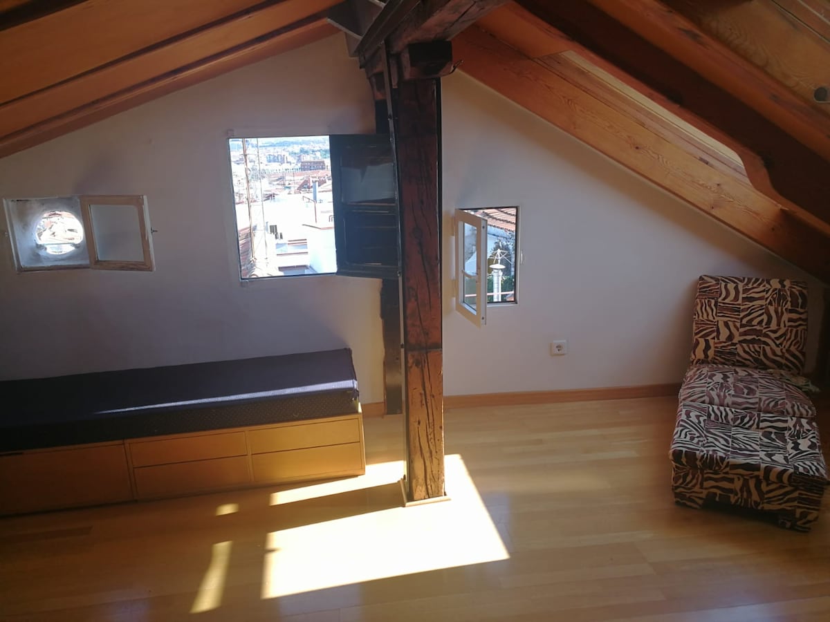 Si queréis estancias a largo plazo mejor preguntar directamente. Moderno ático de 55m en el centro de Alcalá con chimenea y 30m de terraza. Perfecto para familias, parejas y viaje de trabajo. Bus/taxi a Madrid y aeropuerto a 50 metros. El parking es comunitario y se encuentra a escasos 200m del alojamiento. Es necesario acceder primero al apartamento para recoger el mando del parking y luego aparcar. Los carritos de bebé se pueden dejar en la sala de contadores durante la estancia.